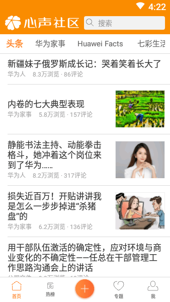 华为心声社区官方版被外界称为华为的罗马广场,华为员工可以预览华为最新的家事,也是华为的内部论坛、行政窗口、交友社区。非华为员工可以访客身份进入!这是华为内部员工交流分享的平台,也是外界了解华为文化的窗口。为安卓用户量身定制的综合体验,界面简洁,操作便捷,支持读者在线浏览论坛、报纸、视频、圈子,以及评论、下载、分享等。带你走进华为人的精彩世界。
